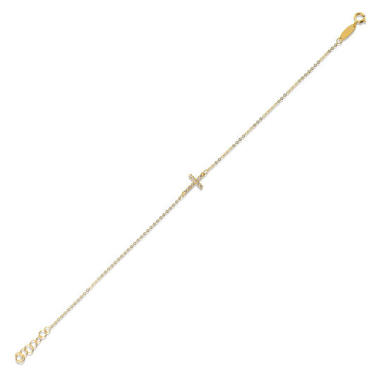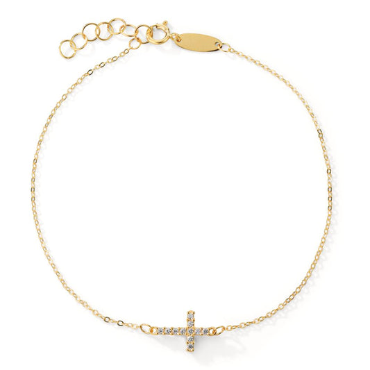 Armband 375/9 K Gelbgold Zirkonia 11 Steine Kreuz 17-19 cm verstellbar