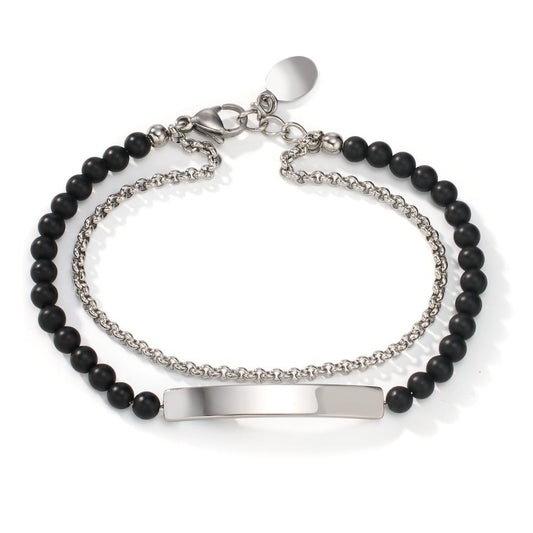 Armband ERA mit schwarzen Achat Perlen und Edelstahl Ø6.5 mm