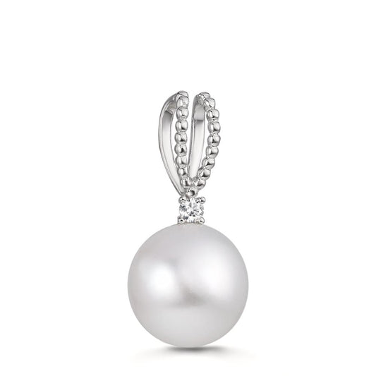 Collier Silber Zirkonia 4 Steine rhodiniert Süsswasserzuchtperle Bouton 7-7.5 mm 38-42 cm verstellbar