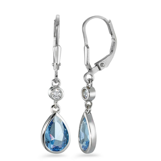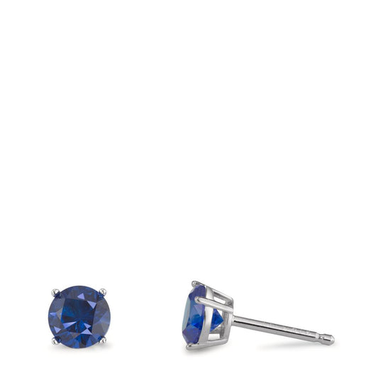 Ohrstecker Silber Zirkonia aqua, 2 Steine rhodiniert Ø6 mm
