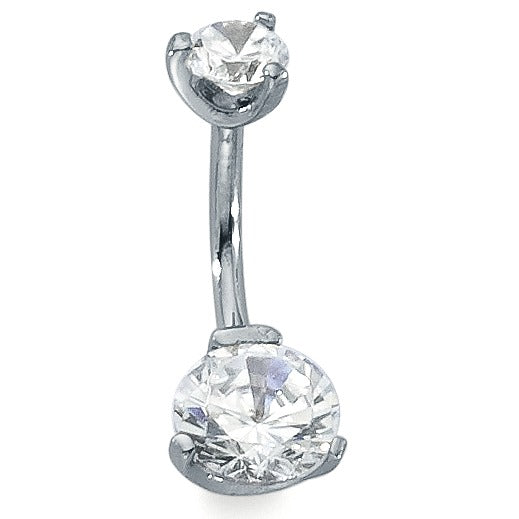 Bauchpiercing Titan Kristall weiss, 2 Steine