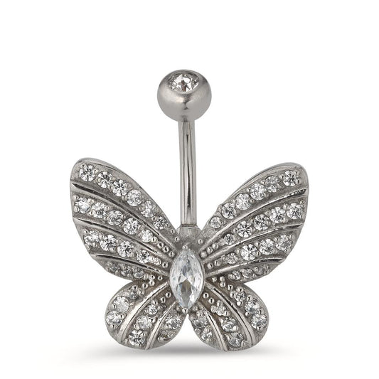 Bauchpiercing Edelstahl Zirkonia rosa, 5 Steine Schmetterling