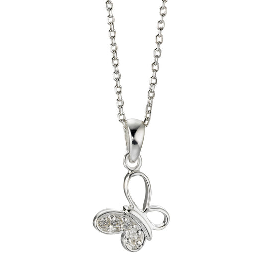 Halskette mit Anhänger Silber Zirkonia weiss, 4 Steine Schmetterling 36-38 cm verstellbar