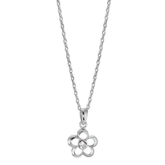 Halskette mit Anhänger Silber Zirkonia weiss rhodiniert Blume 38-40 cm verstellbar Ø11 mm