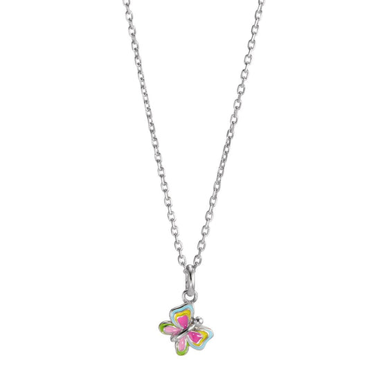 Halskette mit Anhänger Silber Zirkonia weiss, 4 Steine Schmetterling 36-38 cm verstellbar