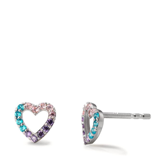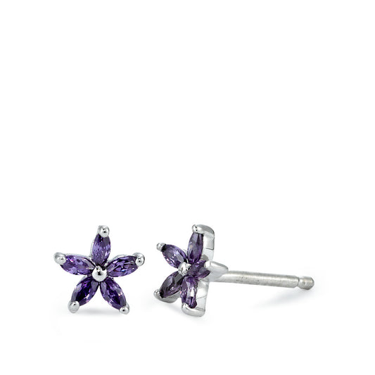 Ohrstecker Silber Zirkonia violett, 10 Steine, Navetteschliff rhodiniert Ø7 mm
