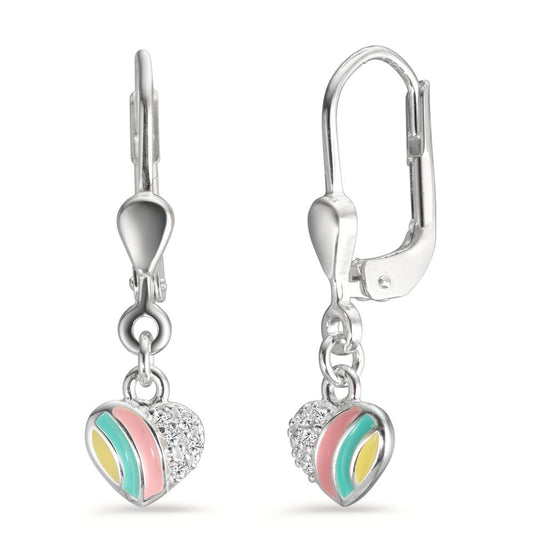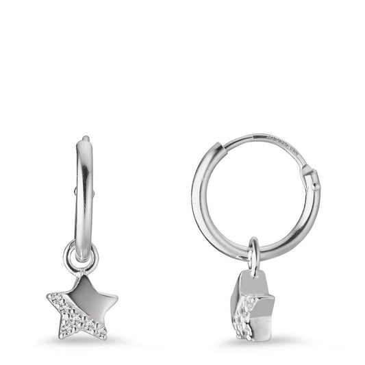 Ohrhänger Silber Zirkonia 2 Steine Blume Ø6 mm