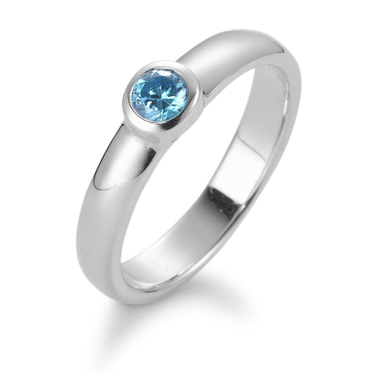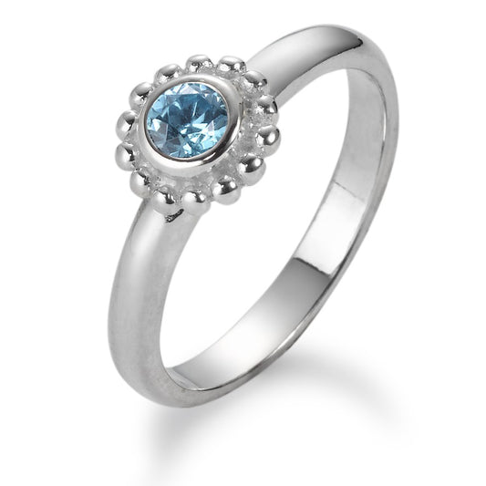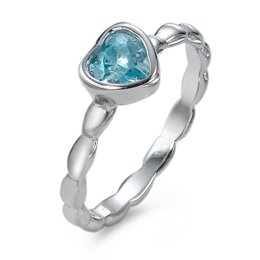 Fingerring Silber Zirkonia blau rhodiniert Herz