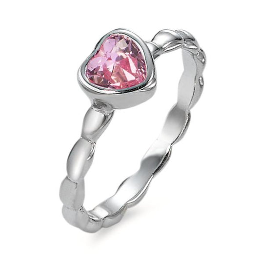 Fingerring Silber synth. Rubin rosa rhodiniert Herz