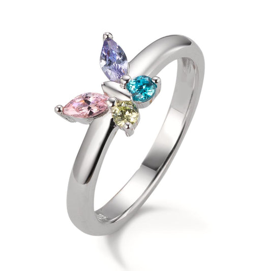 Fingerring Silber Zirkonia 4 Steine rhodiniert Schmetterling