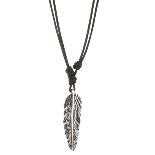 Halsschmuck mit Anhänger Silber, Textil patiniert Feder 40-80 cm verstellbar
