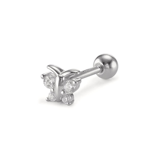 Bauchpiercing Edelstahl Zirkonia weiss, 5 Steine Schmetterling