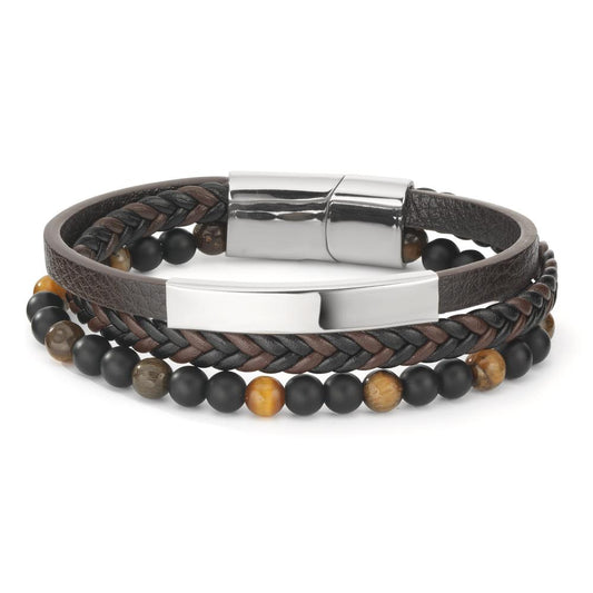 Gravurarmband Edelstahl, Kunstleder Tigerauge 20.5 cm