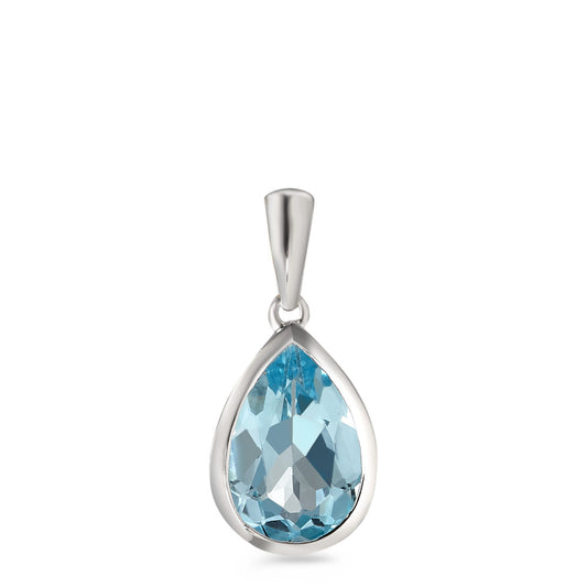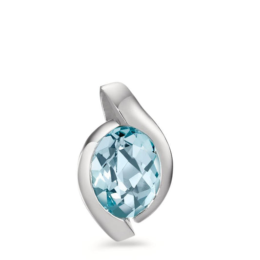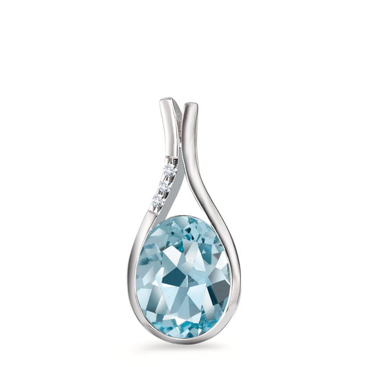 Anhänger 750/18 K Weissgold Topas blau, oval, Diamant weiss, 0.015 ct, 3 Steine, Brillantschliff, w-si