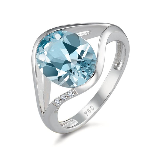 Fingerring 750/18 K Weissgold Topas blau, 2.85 ct, Diamant 0.015 ct, 3 Steine, Brillantschliff, w-si
