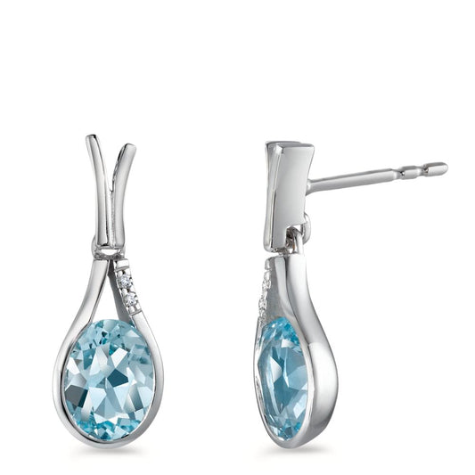 Ohrhänger 750/18 K Weissgold Topas blau, 2 Steine, oval, Diamant weiss, 0.016 ct, 2 Steine, Brillantschliff, w-si