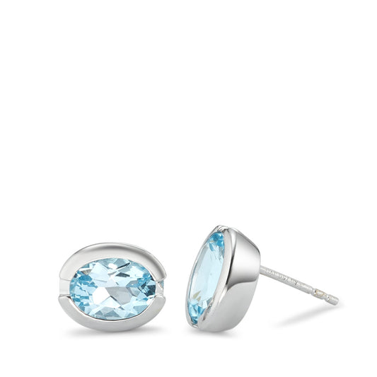Ohrstecker 750/18 K Weissgold Topas blau, 2 Steine