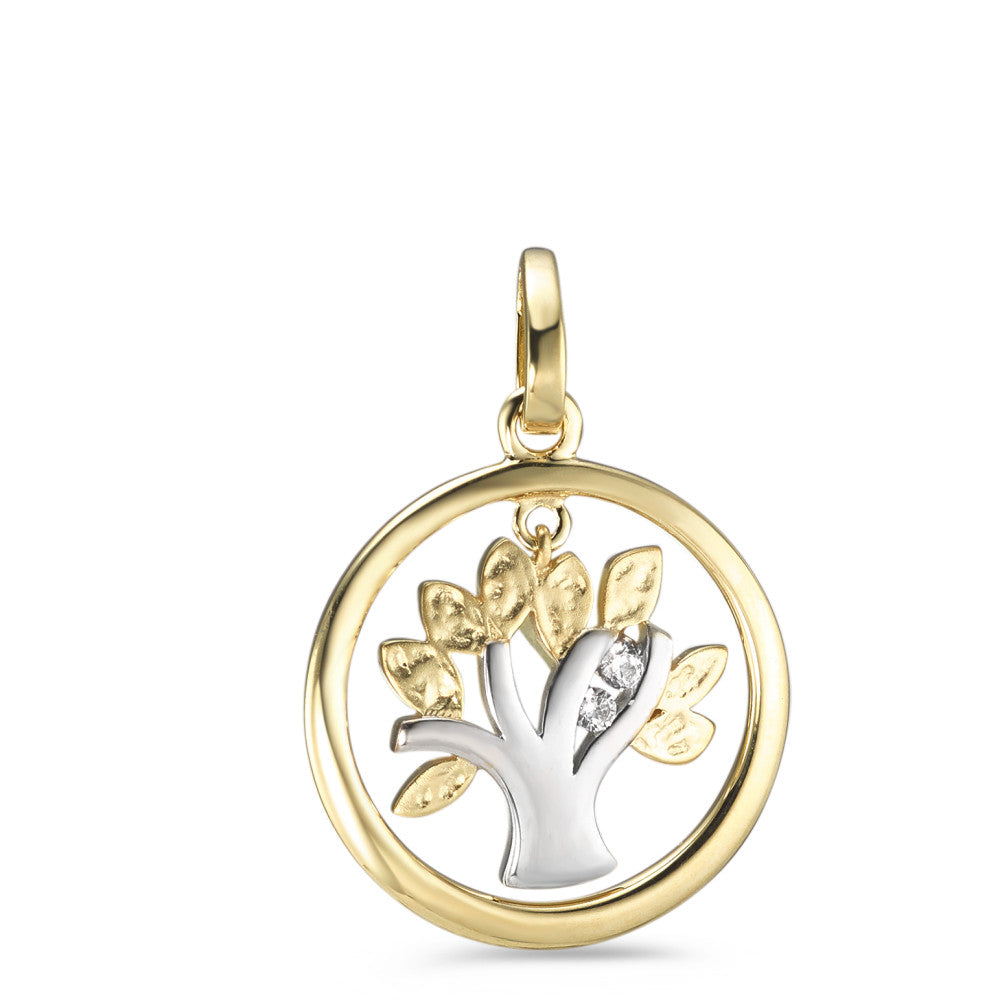 Anhänger 375/9 K Gelbgold, 375/9 K Weissgold Zirkonia 2 Steine Lebensbaum Ø17 mm