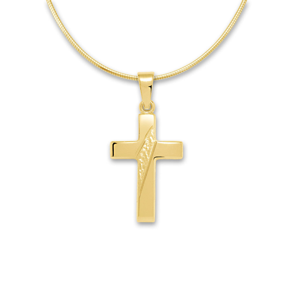 Edler Anhänger aus 375er Gelbgold in Kreuzform. Das stilvolle Design mit ausgesuchten Details verleiht Ihrem Outfit einen dezenten und zugleich besonderen Akzent. Perfekt als religiöses Symbol oder modisches Accessoire – zeitlos und edel.