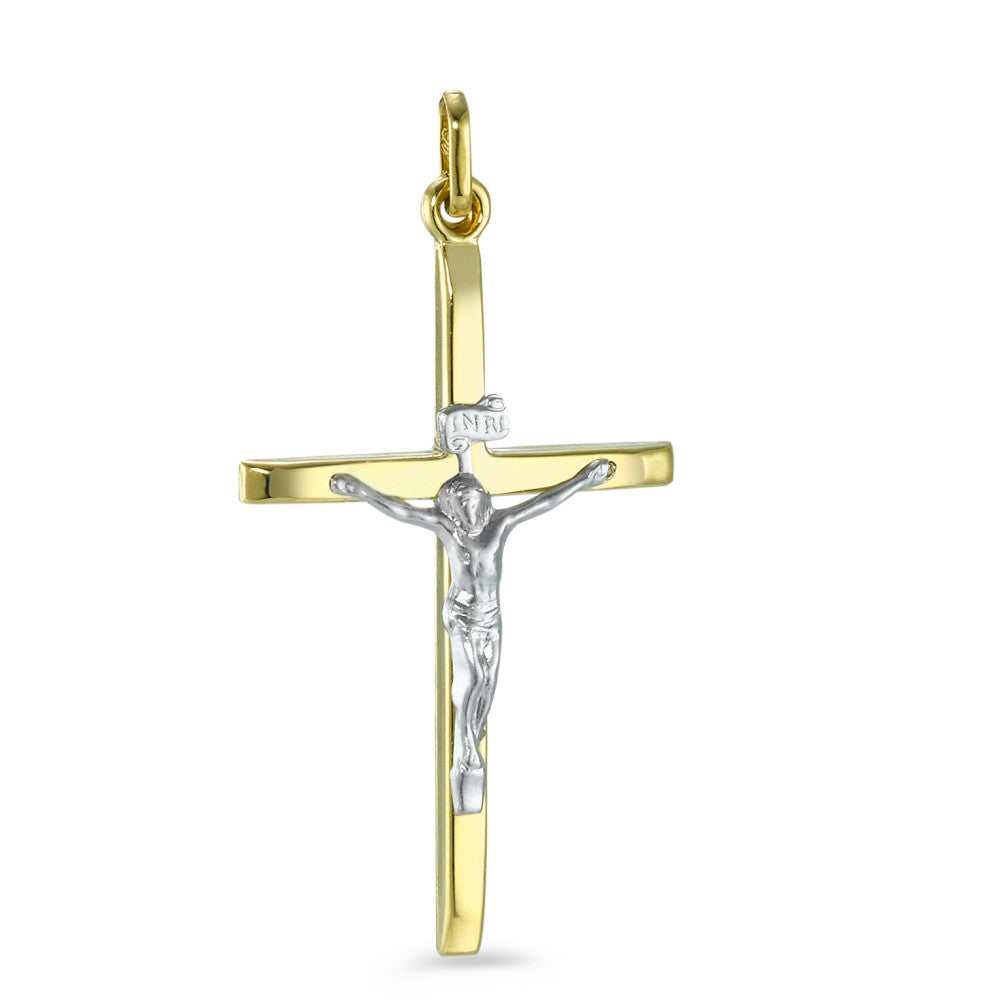 Dieser elegante Anhänger aus 375er Gelbgold überzeugt mit einem filigranen Kreuzdesign. Das zweifarbige Detail durch die weiße Christusfigur verleiht dem Schmuckstück eine besondere Wirkung. Perfekt als symbolträchtiges Accessoire oder Geschenk für besondere Anlässe.