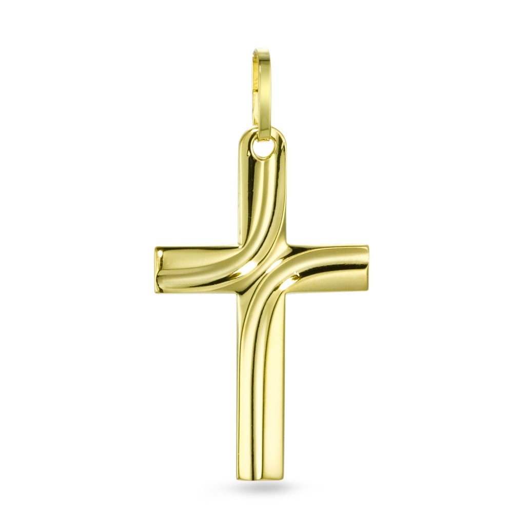 moderner Herren Anhänger in Kreuzform aus hochwertigem 375er Gelbgold. Zeitloses Design mit glänzender Oberfläche und dezenten Linien für stilvolle Akzente. Ideal als edles Schmuckstück für jeden Anlass. Perfekt geeignet als Geschenk oder persönliches Symbol.