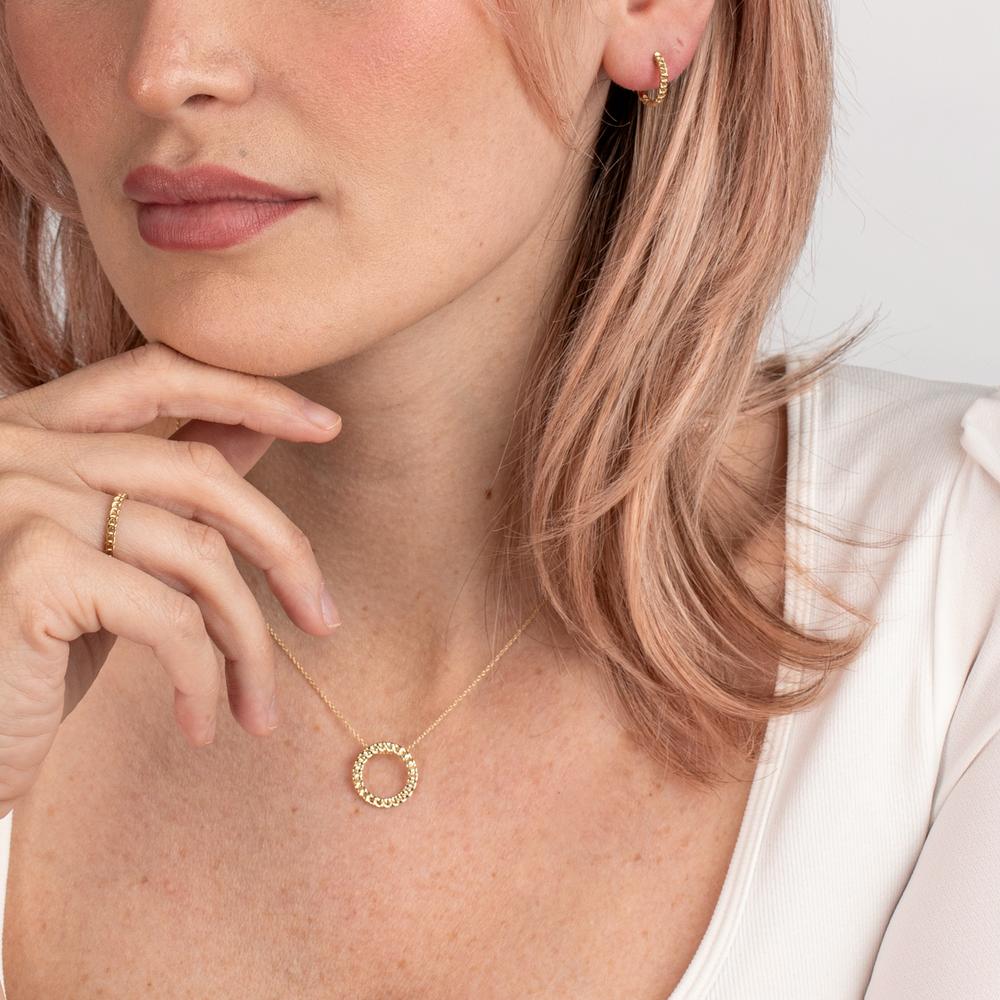 Eleganter Damenanhänger aus hochwertigem 375er Gelbgold. Das runde Design mit geschwungenen Gliedern verleiht jedem Outfit eine stilvolle Note. Perfekt für besondere Anlässe oder den Alltag – zeitlos, edel und vielseitig kombinierbar. Ein Must-have für Schmuckliebhaberinnen.