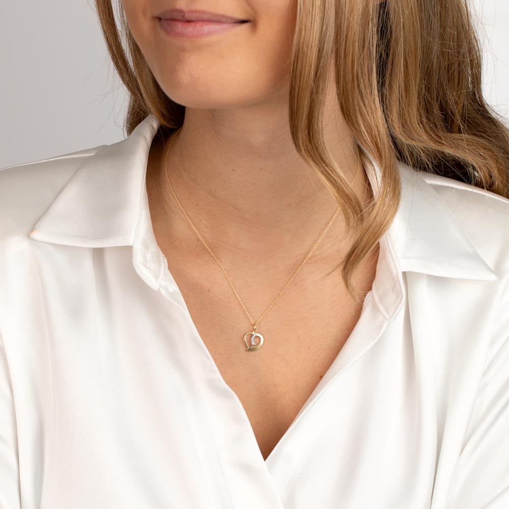 Eleganter Damenanhänger aus 375er Gelbgold in Herzform. Der Anhänger besticht durch funkelnde Zirkonia-Steine, die dezent in Weißgold eingefasst sind. Ein stilvolles Schmuckstück, das Zärtlichkeit und Glamour perfekt vereint. Ideal als Geschenk oder für den eigenen Stil.