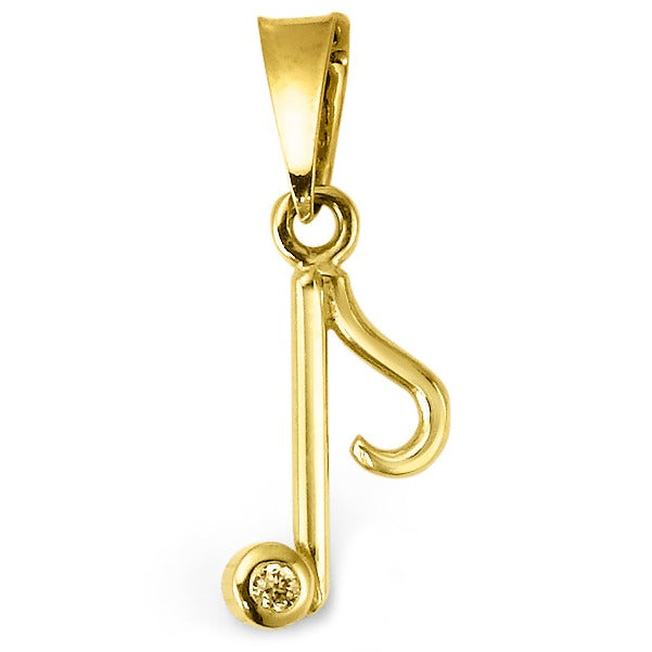 Eleganter Anhänger aus 375 Gelbgold in Form einer stilisierten Note, veredelt mit funkelndem Zirkonia. Einzeln oder als Geschenk für Musikliebhaber geeignet. Hochwertige Verarbeitung und zeitloses Design für jeden Anlass. Ideal für Ketten mit feinem Glanz.