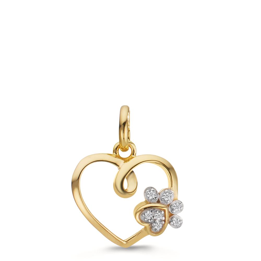 Anhänger 375/9 K Gelbgold Zirkonia 7 Steine Herz mit Pfote