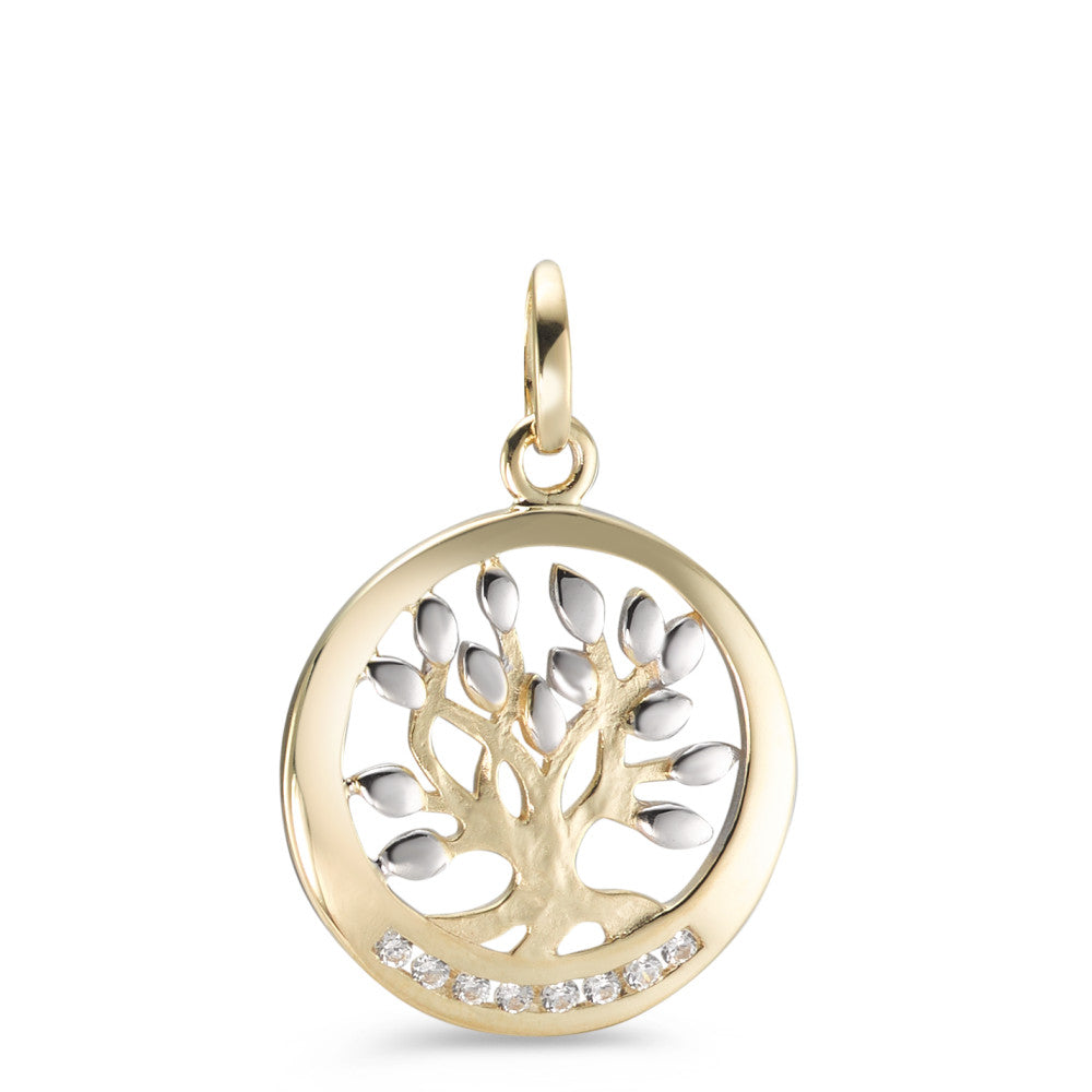 Anhänger 375/9 K Gelbgold Zirkonia 9 Steine bicolor Lebensbaum Ø16 mm