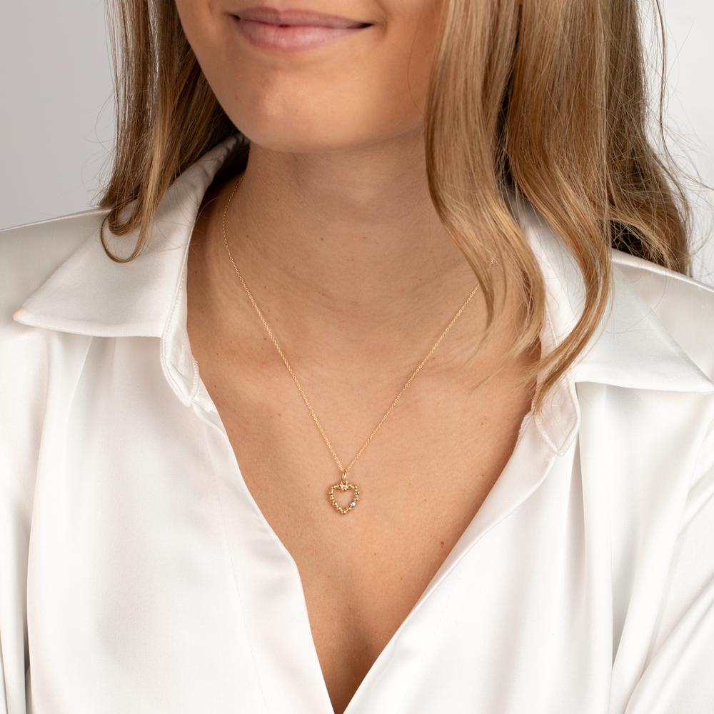 Eleganter Damen-Anhänger aus hochwertigem 375er Gelbgold in Form eines Herzs aus Perlen. Ein funkelnder Zirkonia setzt einen strahlenden Akzent. Perfekt als Geschenk oder für den eigenen Schmuckschatz – zeitlos und stilvoll.