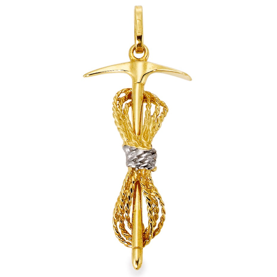 Moderner Herrenanhänger aus 750er Gelbgold, gestaltet als Bergsteiger-Eispickel mit detailverliebter Seil-Element. Ein einzigartiges Schmuckstück für Outdoor-Fans und Abenteurer, das Stil und Leidenschaft für das Bergsteigen perfekt verbindet. Robust und elegant zugleich.