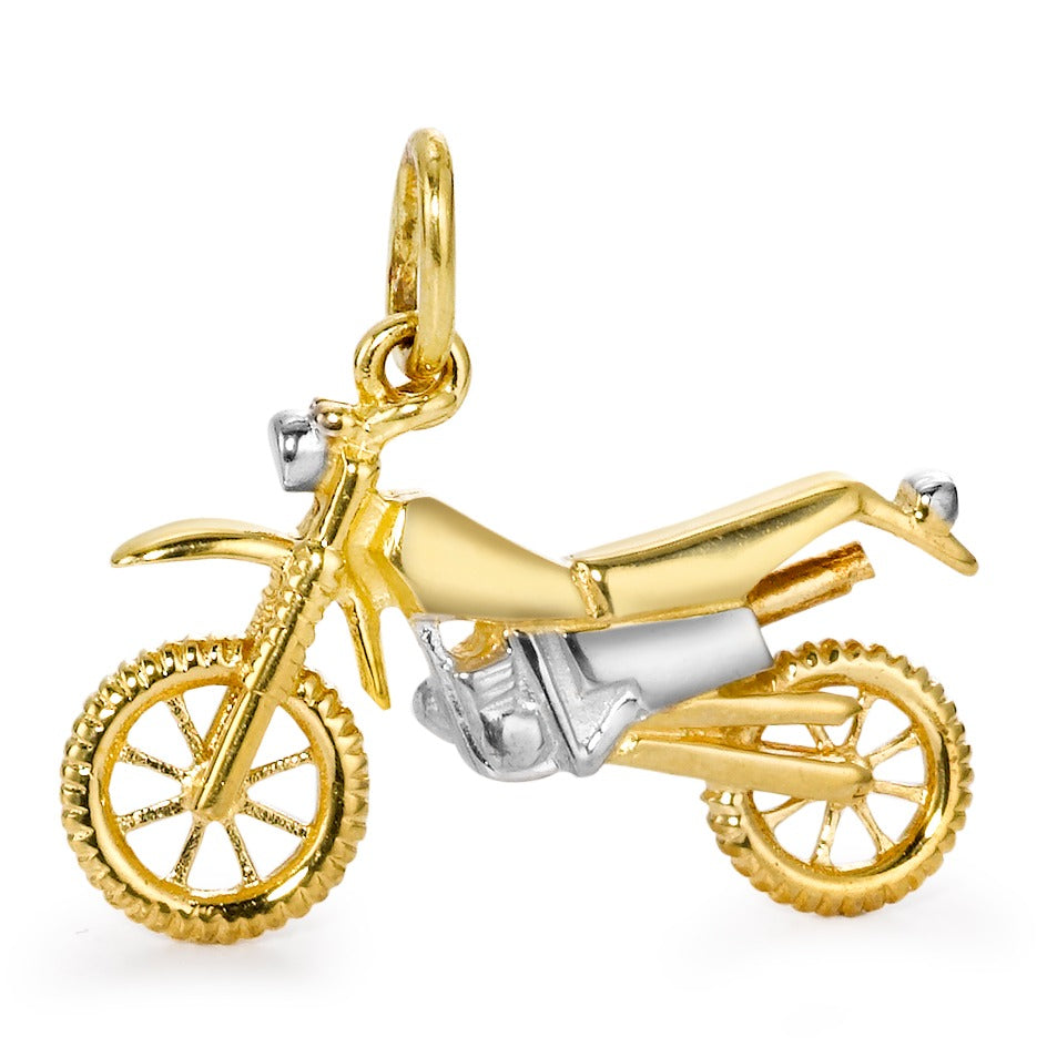 Dieser Herren-Anhänger aus 750er Gelbgold ist detailreich als Motorrad gestaltet. Das zweifarbige Design in Gold und Weißgold verleiht ihm einen besonderen Charme. Perfektes Schmuckstück für Motorradfans, robust und stilvoll zugleich. Ein echtes Highlight fürs Lederband oder die Kette.