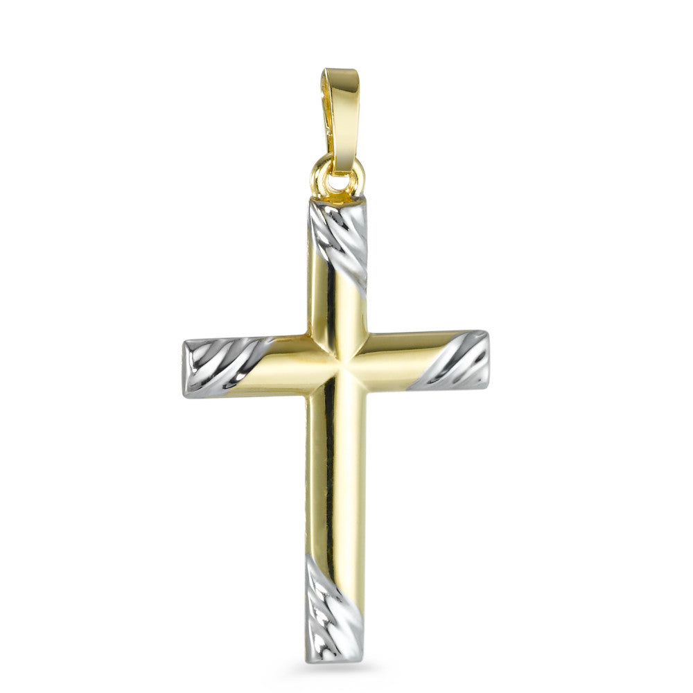Eleganter Kreuz-Anhänger aus 750er Gelbgold mit dezenten weißen Akzenten. Zeitloses Design, das Ihrem Schmuckstück einen feinen, stilvollen Akzent verleiht. Perfekt als Geschenk oder für den täglichen Gebrauch. Hochwertige Verarbeitung für langlebigen Glanz.