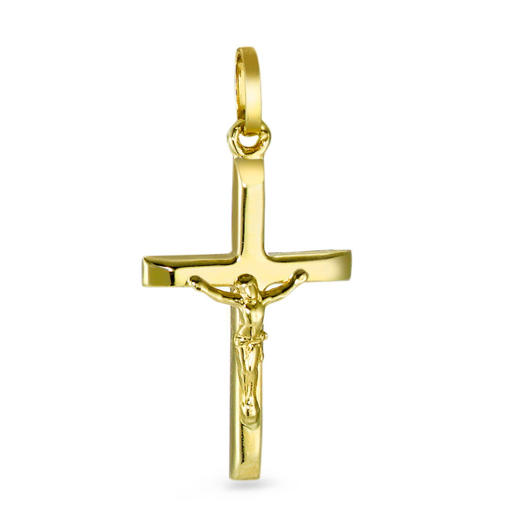 Edler Kreuz-Anhänger aus 750er Gelbgold mit filigraner Detailgestaltung. Zeitloses Schmuckstück, das Glauben und Stil auf elegante Weise verbindet. Perfekt als Geschenk oder für den eigenen besonderen Look. Hochwertig verarbeitet und langlebig.
