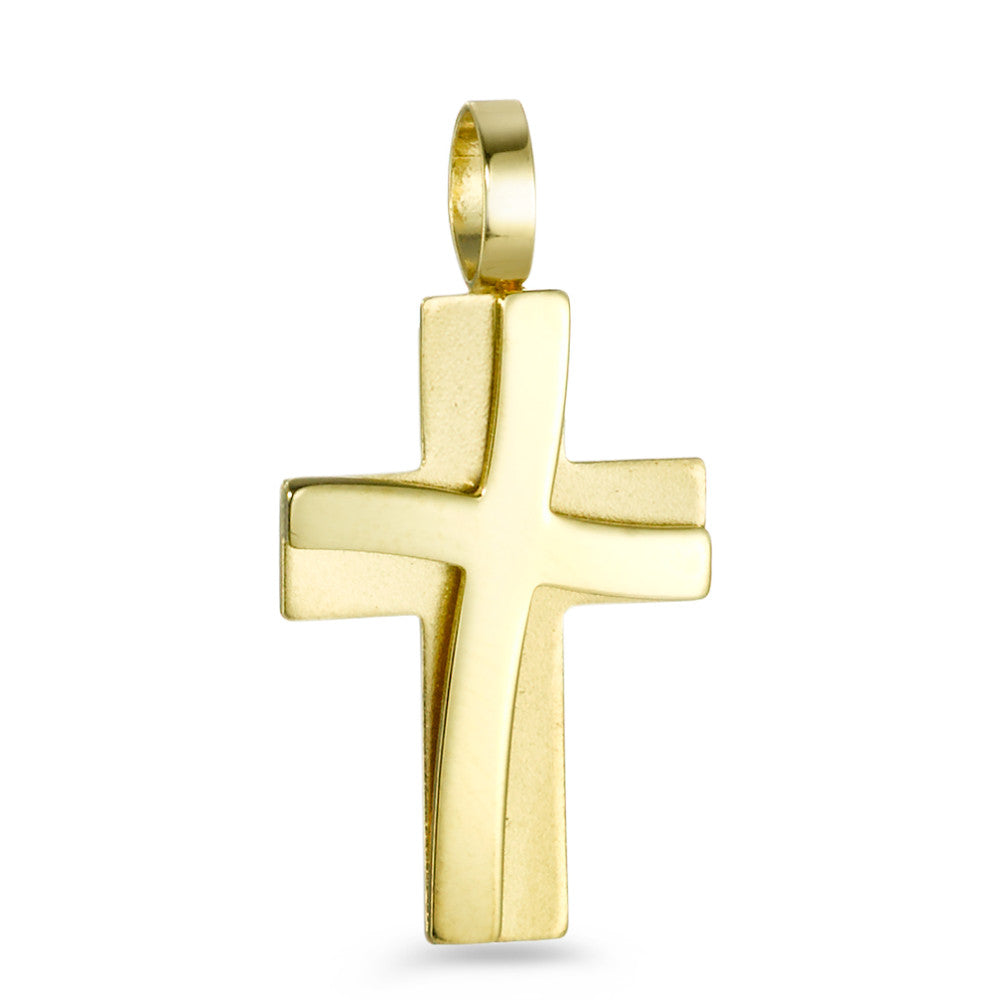 Zeitloser Anhänger aus hochwertigem 750er Gelbgold in Form eines Kreuzes. Mit seiner eleganten Kombination aus polierten und matten Flächen verleiht er jedem Outfit einen stilvollen Akzent. Perfekt als symbolisches Schmuckstück für jeden Anlass.