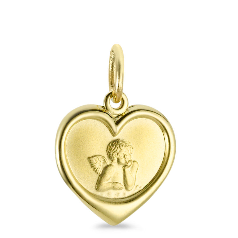 Zauberhafter Baby-Anhänger aus 750er Gelbgold in Herzform mit liebevoll graviertem Schutzengel-Motiv. Ein besonderer Glücksbringer und stilvolles Geschenk zur Taufe oder Geburt, der Schutz und Liebe symbolisiert. Hochwertig verarbeitet, zeitlos schön.