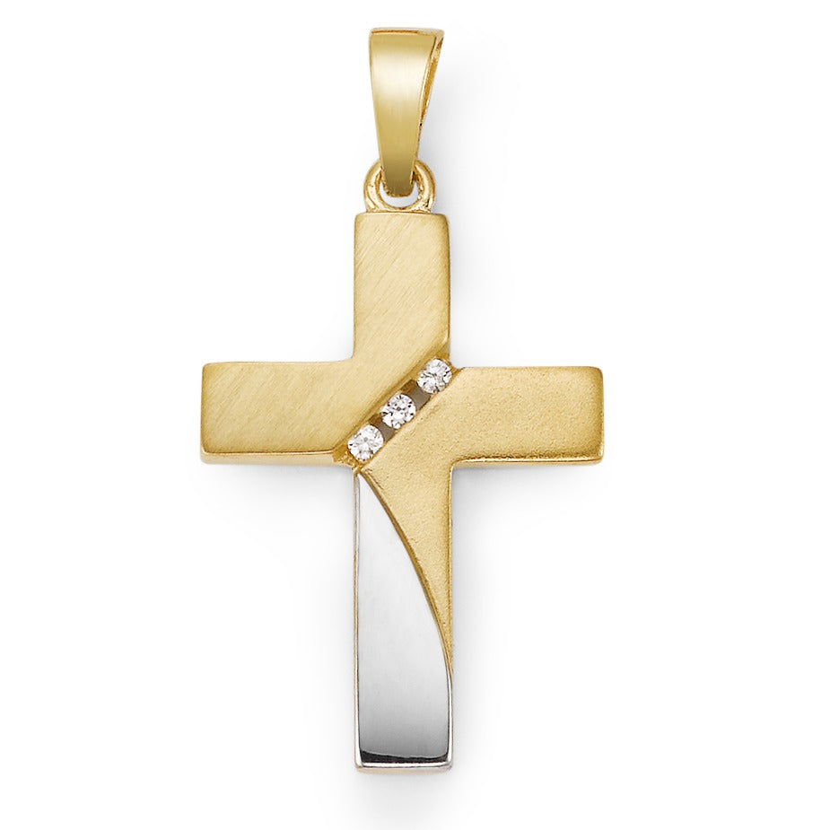Anhänger 750/18 K Gelbgold Zirkonia 3 Steine Kreuz