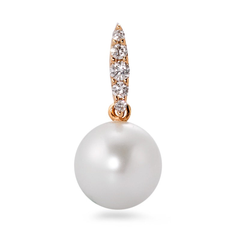 Eleganter Damenanhänger aus 750er Roségold, veredelt mit funkelnden Diamanten und einer strahlenden weißen Perle. Dieses zeitlose Schmuckstück vereint edle Materialien und raffinierte Handwerkskunst – perfekt für besondere Anlässe oder den stilvollen Alltag.