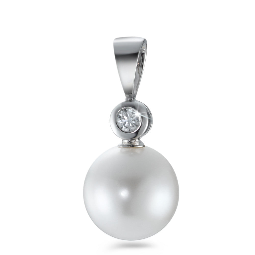 Anhänger 750/18 K Weissgold Diamant 0.06 ct, w-si Süsswasserzuchtperlen, 10 mm
