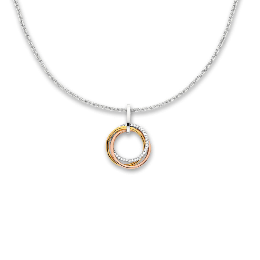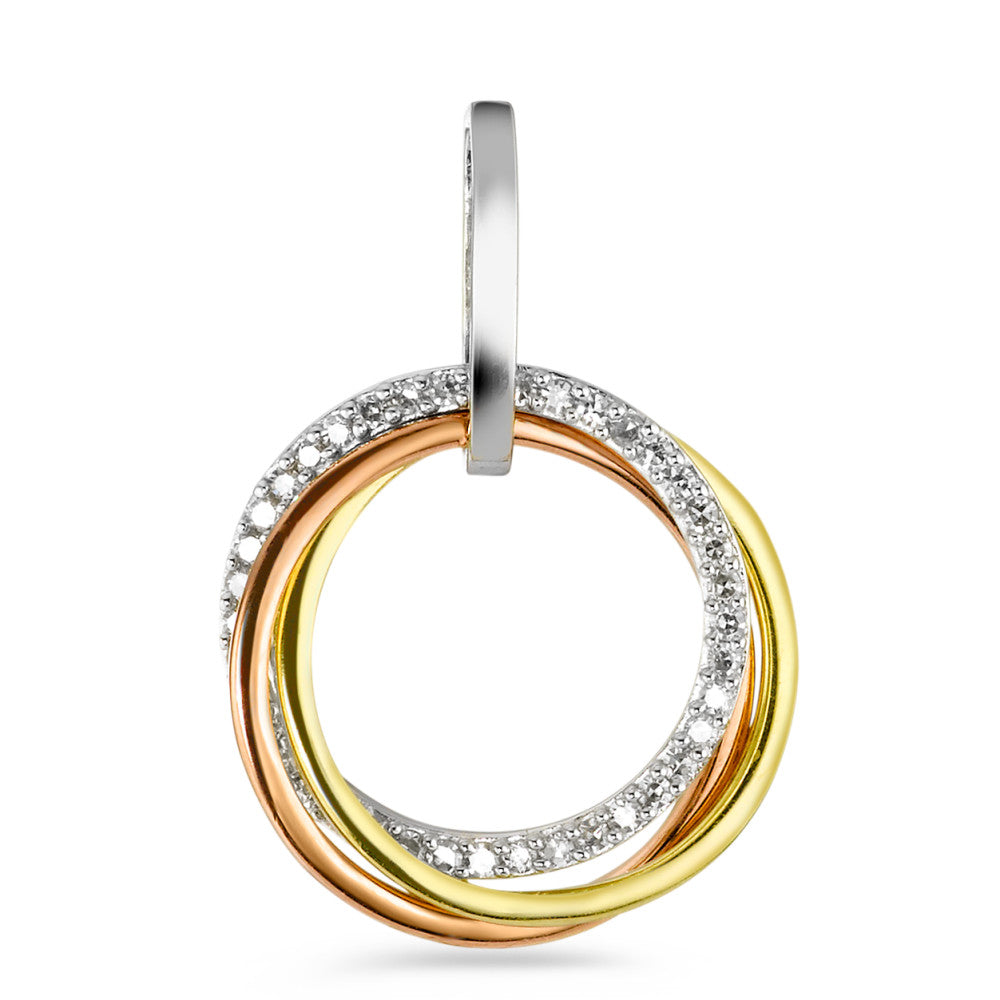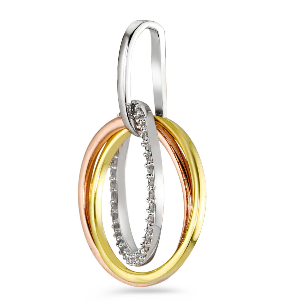 Eleganter Damenanhänger aus 750er Weiß-, Gelb- und Rotgold. In einem modernen Design vereint, funkeln hochwertige Diamanten an einem der Ringe und setzen brillante Akzente. Perfekt, um stilvolle Highlights zu setzen und jeden Look zu ergänzen.