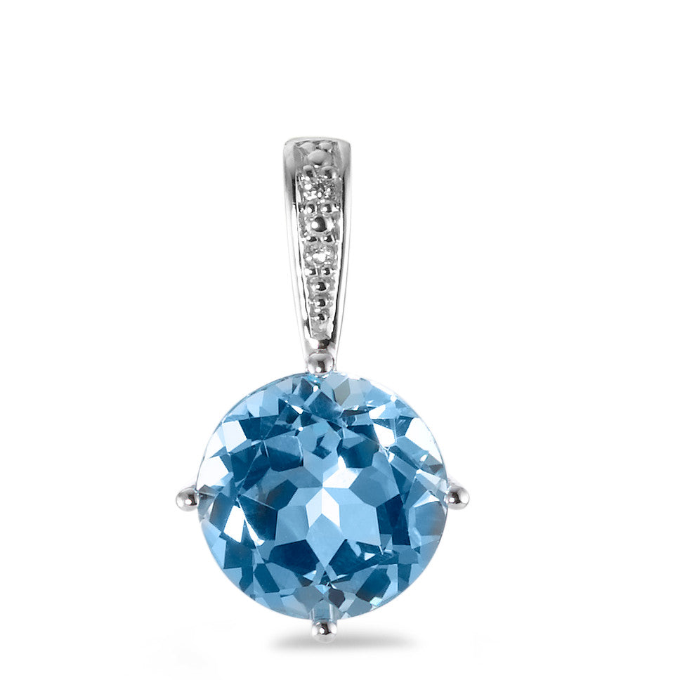 Eleganter Damen-Anhänger aus 750er Weißgold mit funkelndem, rundem Topas und zarten Diamanten auf der Öse. Ein zeitloses Schmuckstück, das durch das Zusammenspiel von edlem Weißgold und strahlenden Edelsteinen besticht – perfekt für besondere Anlässe oder den täglichen Stil.