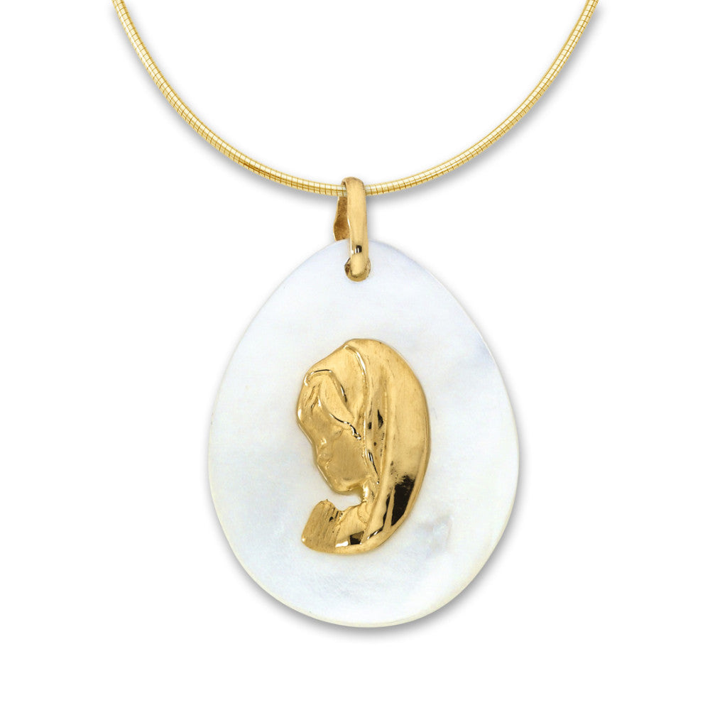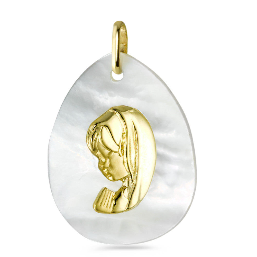 Eleganter Damenanhänger aus 375er Gelbgold mit feinem Perlmutt. Das zarte Design zeigt eine betende Figur und verbindet edle Materialien mit schlichtem Charme. Perfekt als symbolträchtiges Schmuckstück für jeden Anlass. Ein besonderes Highlight für Ihre Schmucksammlung.