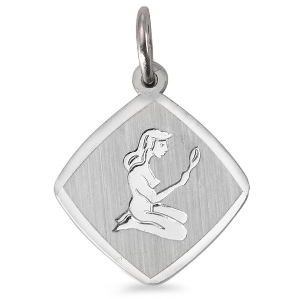 Eleganter Anhänger aus hochwertigem Silber mit dem Sternzeichen Jungfrau. Das liebevoll gestaltete Motiv zeigt die typische Jungfrau-Gestalt auf quadratischer, fein gebürsteter Oberfläche. Ein stilvolles Schmuckstück, das Persönlichkeit und Stil verbindet.