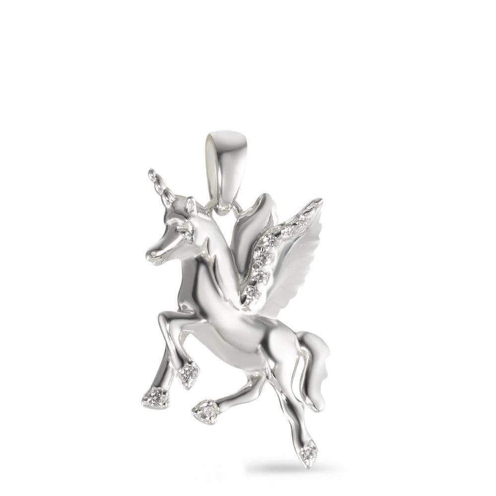 Zauberhafter Einhorn-Anhänger aus hochwertigem Silber, veredelt mit funkelnden Zirkonia-Steinen. Das detailreiche Design mit Flügeln macht diesen Schmuck zu einem perfekten Geschenk für Mädchen, die Einhörner lieben. Ideal für Halsketten und besondere Anlässe.