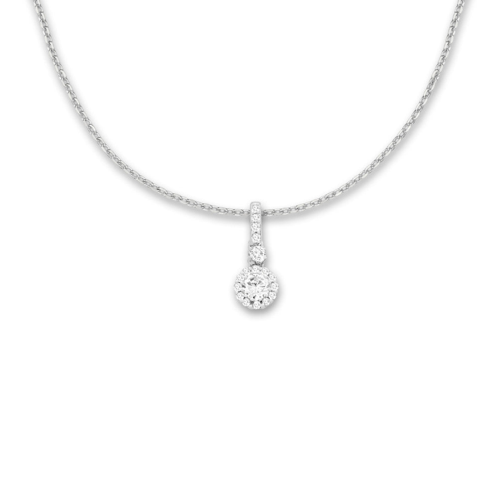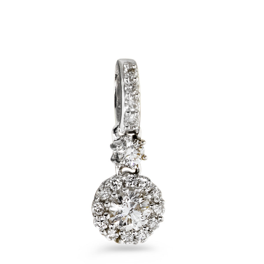 Eleganter Damen-Anhänger aus hochwertigem 750er Weißgold, verziert mit funkelnden Diamanten. Der zarte Anhänger besticht durch einen großen Brillanten, umgeben von kleineren Steinen, für ein strahlendes und zeitloses Schmuckstück – perfekt für besondere Anlässe oder den Alltag.