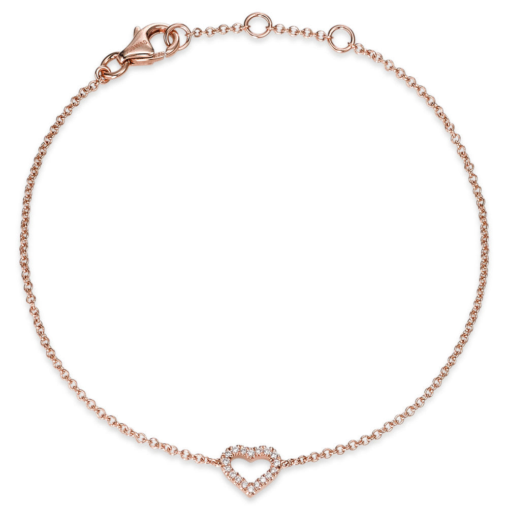 Armband 750/18 K Rotgold Diamant 0.06 ct, 18 Steine, si Herz verstellbar