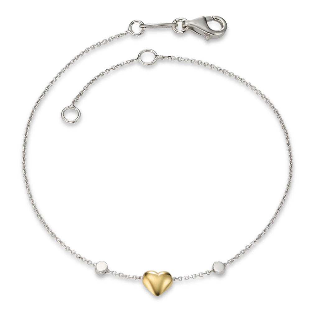 Armband 750/18 K Weissgold, 750/18 K Gelbgold Herz 16-18 cm verstellbar Ø4.5 mm