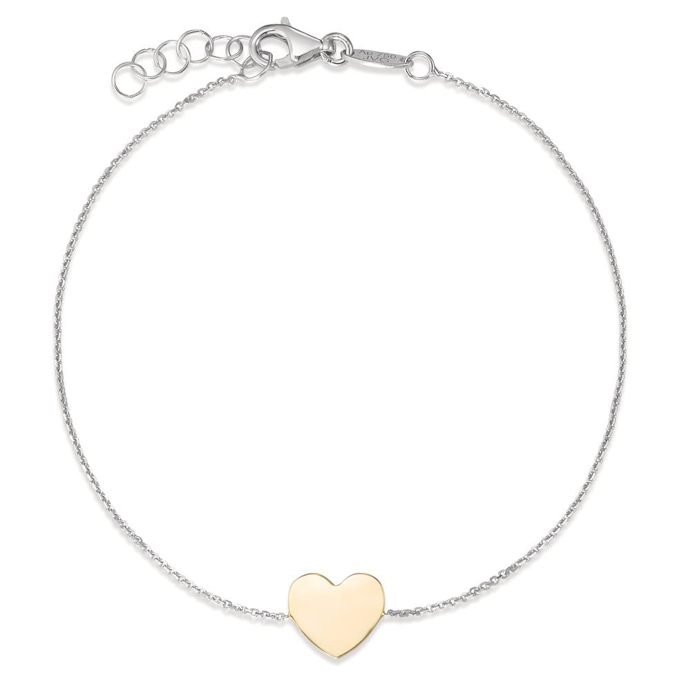 Armband 750/18 K Weissgold, 750/18 K Gelbgold Herz 17-18.5 cm verstellbar