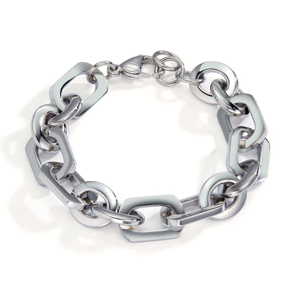 Elegantes Damenarmband aus hochwertigem Edelstahl mit wechselnden rechteckigen und runden Gliedern. Das polierte Design sorgt für modernen Look und langen Tragekomfort. Perfekt als stilvolles Accessoire für jeden Anlass. Verschluss mit Karabiner.